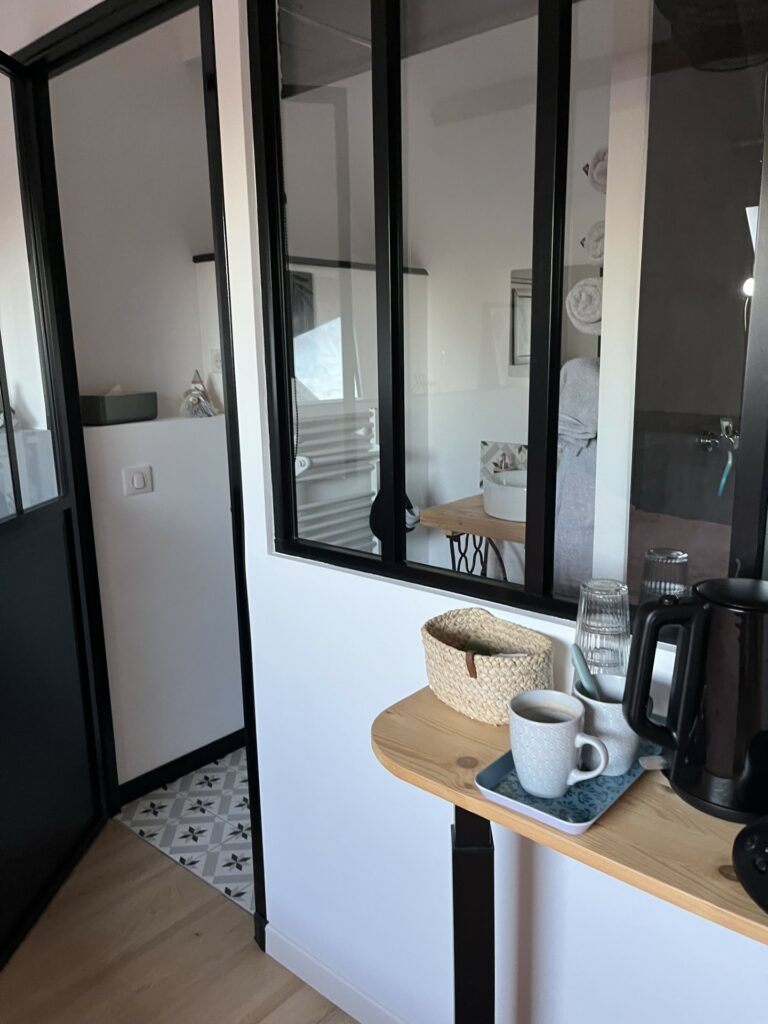 - Coin bar à disposition : bouilloire, machine à café avec dosettes, sachets de thé, petites mignonnettes de chocolat… ces attentions qui font toute la différence.