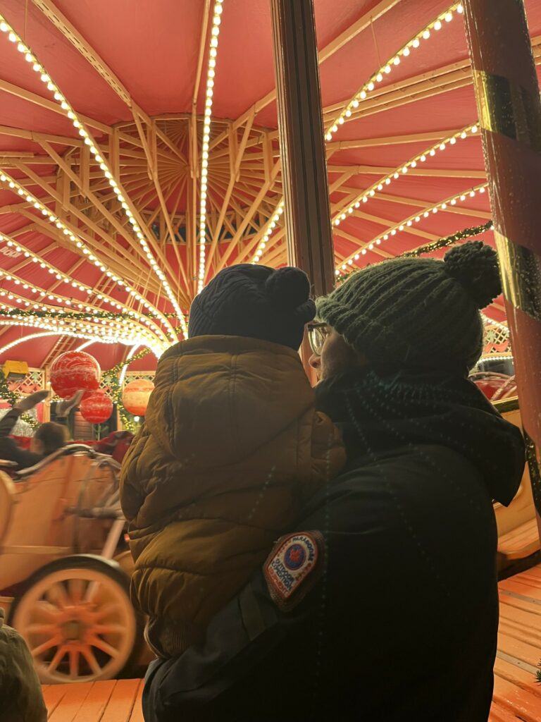 Cette année, c’était le premier marché de Noël de Gaston. Il a évidemment repéré les croustillons, observé les illuminations avec curiosité et profité de la balade.